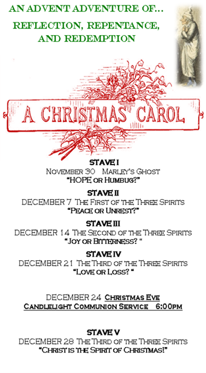 Today is the Fifth and final Sunday of Advent and our theme today is CHRIST. It has been a different journey through Advent this year, and I have enjoyed our times together in the Word and as we have used Dickens’ A Christmas Carol to traverse the weeks since November 30th.